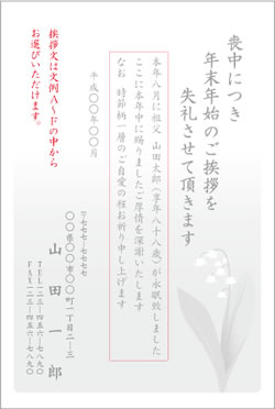 | ○月に○○○が○○歳にて永眠いたしました ここに本年中に賜りましたご厚情を深謝いたしますと共に 明年も変わらぬご支援のほどお願い申し上げます |