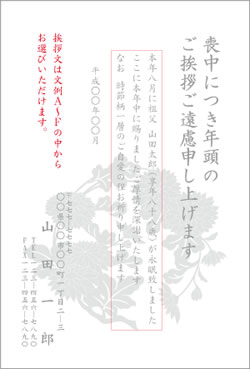 | ○月に○○○が○○歳にて永眠いたしました ここに本年中に賜りましたご厚情を深謝いたしますと共に 明年も変わらぬご支援のほどお願い申し上げます |